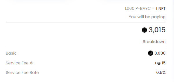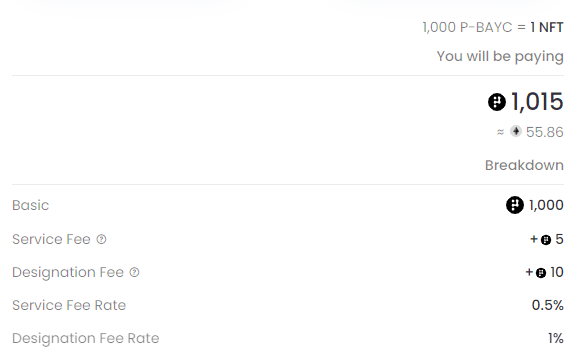 Other than 0.5% service fee, there will be additional 1% designation fee under "Specific" mode, which is 15 P-Token for each specific NFT.
