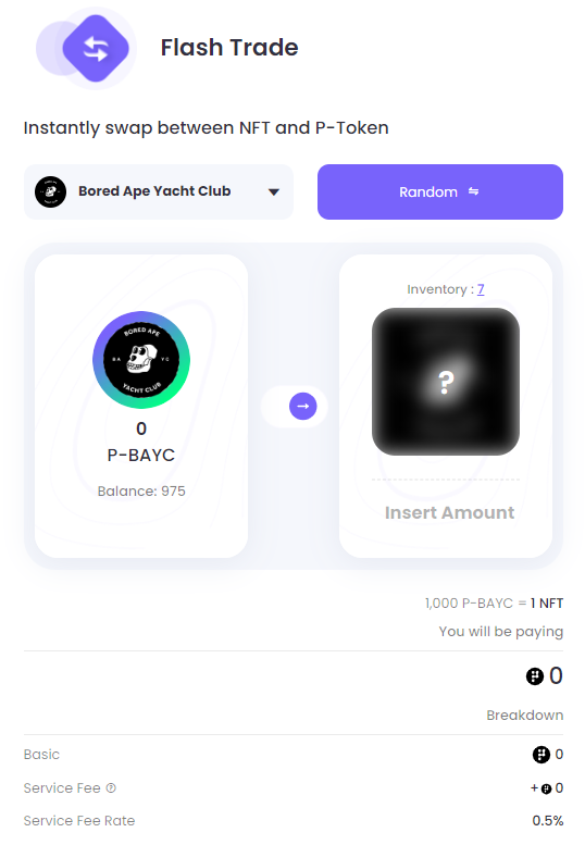 In Pawnfi, user can exchange P-Token for NFT instantly. The exchange rate is always set as 1,000 P-Token/ per NFT.