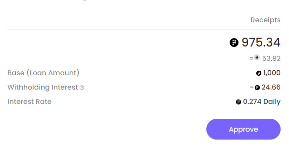 Based on your loan duration and interest rate, withholding interest will be deducted from loan amount.